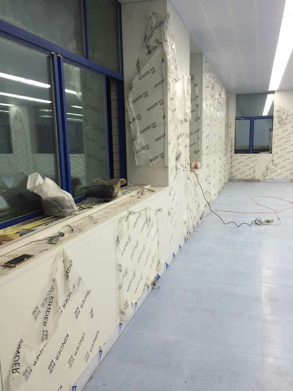表面材料:鍍鋁鋅鋼板0.5/0.6/0.8MM,表面涂層:梅花白烤漆厚度≥25UM;靜電粉末涂層厚度≥45UM,鋼板背襯復(fù)合12MM法國(guó)圣戈班石膏板。
