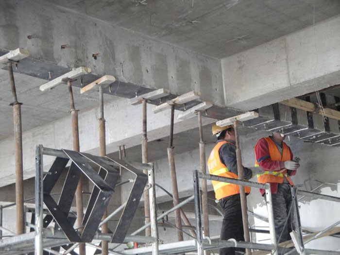 結(jié)構(gòu)加固所用材料(如鋼材、水泥、纖維及膠粘劑等)的質(zhì)量應(yīng)符合國家相關(guān)標(biāo)準(zhǔn)的規(guī)定。例如,加固用的混凝土強度等級應(yīng)比原結(jié)構(gòu)提高一級,且不宜低于C25。