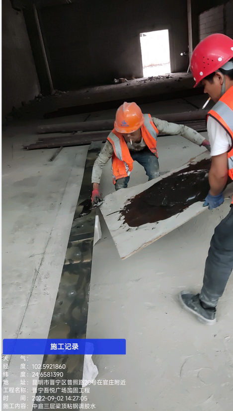 晉寧吾悅廣場四層板面和板底碳布粘貼
